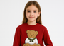 Deze hippe set bestaat uit een rode sweater met een schattige teddybeer-applicatie en een bijpassende short met stijlvolle riem. De zachte stof en warme kleur maken dit de ideale herfst- of winteroutfit voor meisjes van 4 tot 14 jaar.