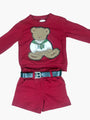 2-delige rode meisjesoutfit met teddybeer trui & short